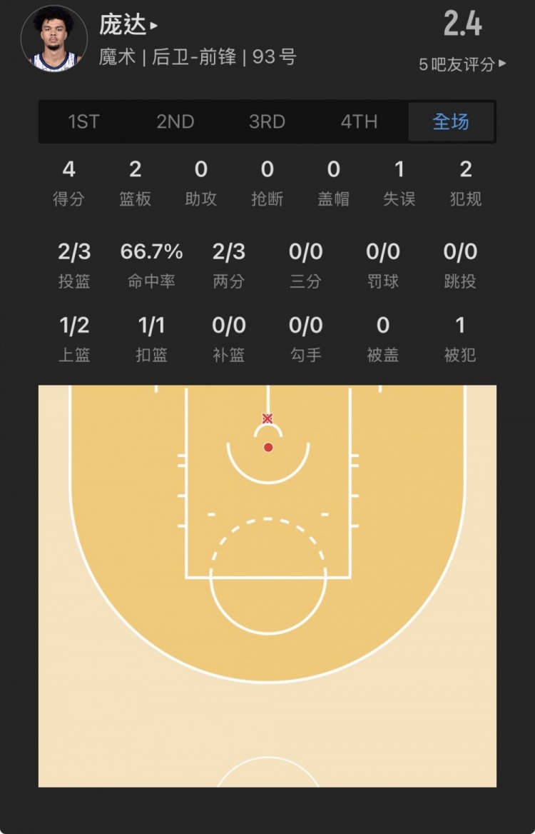魔术32号秀 诺厄-庞达 登场11.8分钟