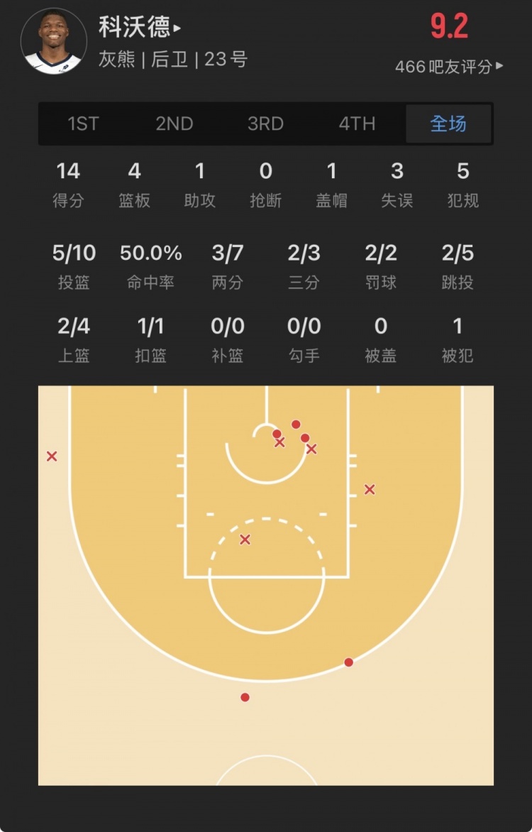灰熊11号秀 锡德里克-科沃德 登场28.5分钟