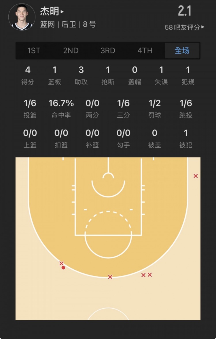 篮网8号秀 叶戈尔-杰明 登场16.3分钟
