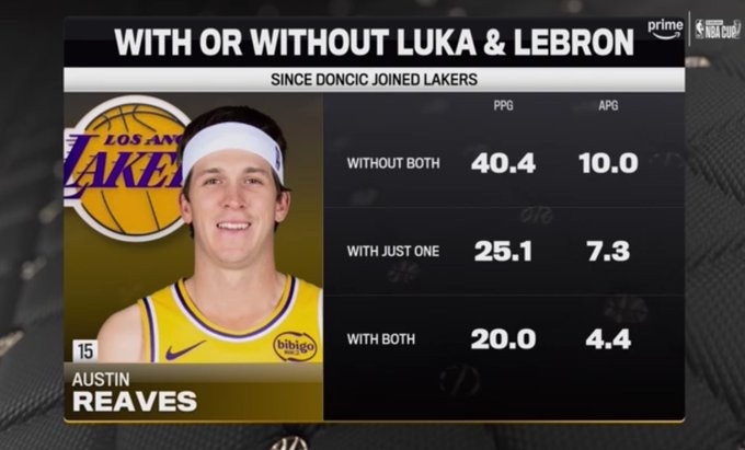 备注:本数据从东契奇加盟湖人后开始统计 小里数据:无詹无东40.4分10助,有其中一人场均25.1分7.3助,有詹有东20分4.4助
