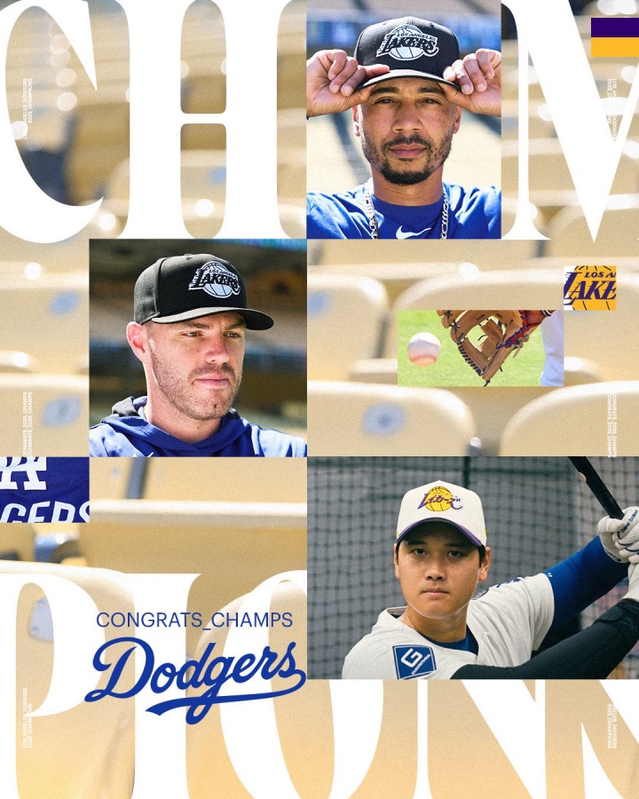 道奇同城球队洛杉矶湖人赛后制作海报送上祝福。詹姆斯赛后感叹祝贺:“体育界最棒的词,抢七!多么精彩的比赛!”东契奇也祝贺:“多么精彩的比赛!恭喜道奇!”