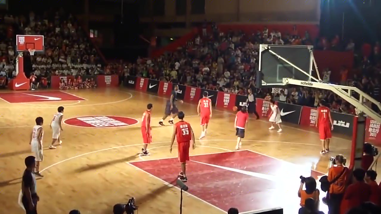 足球比分网11月05日讯 2011年詹姆斯中国台湾行现场,当时还是大学生的CBA上海队球员刘铮,在现场MC“刘铮!抄他!他过不了你!”的鼓励下,对试图背运摆脱的詹姆斯完成抢断,随后还面对詹姆斯的追防,上演一条龙快攻暴扣。 接下来一个回合,詹姆斯传球出现失误,而刘铮则面对詹姆斯的防守直接抬手命中三分。