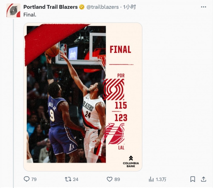 开拓者官方晒本场海报,评论区中部分网友呼吁让杨瀚森上场: