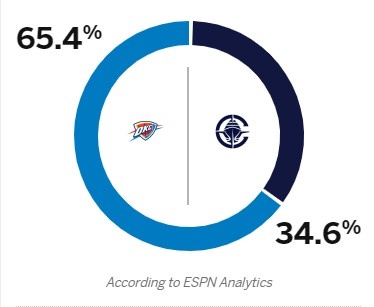 雷霆8连胜?ESPN预测胜率:背靠背的快船34.6% 雷霆