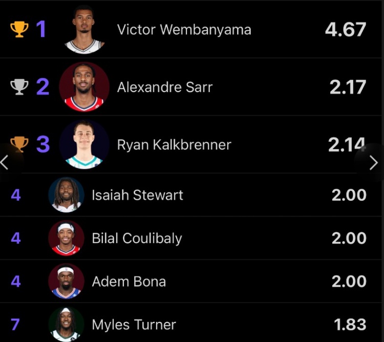 文班盖帽断层领先!场均4.7个是第2名两倍还多