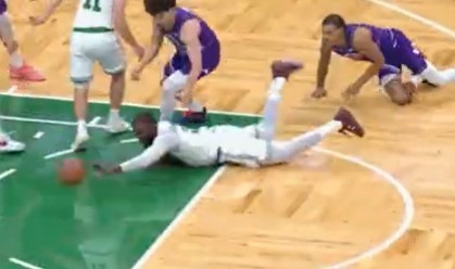 饿虎扑食!杰伦-布朗奋力拼抢地板球 助科塔博得