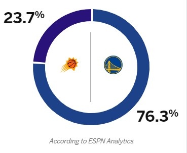 勇士止住连败?ESPN预测胜率:勇士76.3% 太阳23.