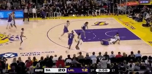 GIF-东契奇反击被卡斯尔绊倒