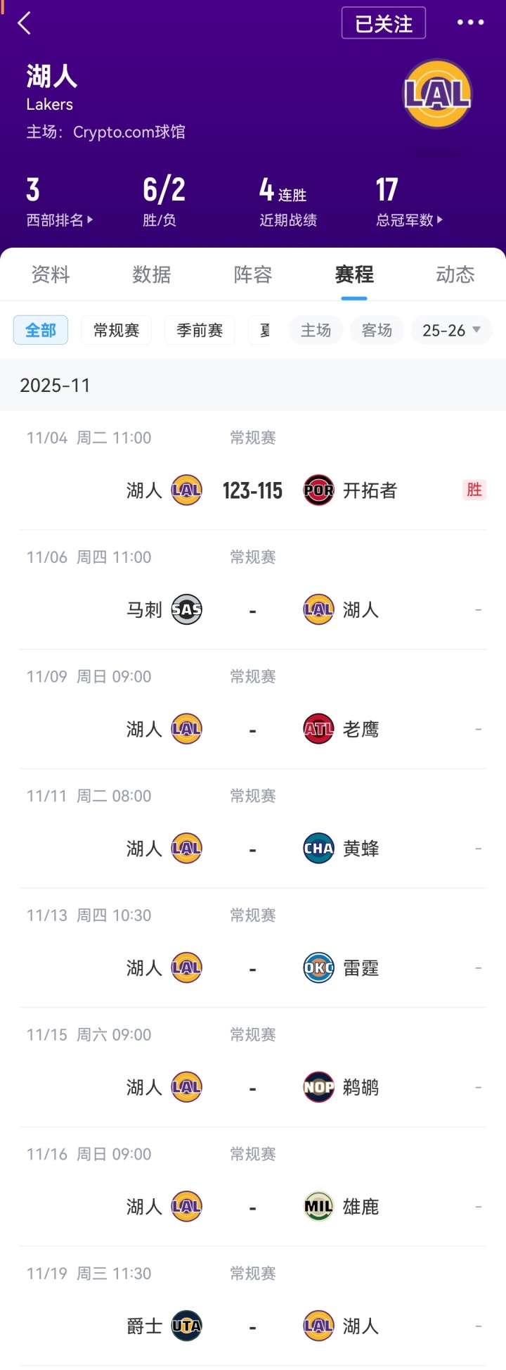 “勒布朗·詹姆斯目前正在进行个人训练,下一步是5V5的全场训练。他不会随队出征湖人队接下来的5连客。因为湖人队都在客场,所以詹姆斯不确定什么时候能够和球队进行5V5训练,他可能会和湖人G联盟球队南湾湖人进行训练,也可能会等到湖人队结束5连客之后再和湖人队进行5V5的训练。我被告知,湖人队成员依然相信詹姆斯的首秀大概在11月中旬,但现在一切都还是未知的。”Shams说道。