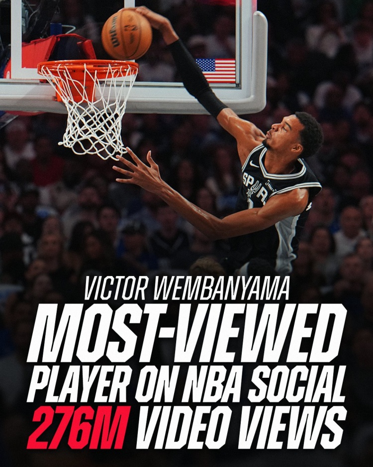 联盟第一!文班在NBA社媒中的视频观看总量达2