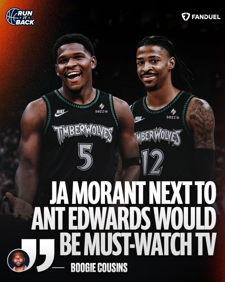 足球比分网11月5日讯 今天前NBA球员考辛斯在《Run It Back》节目中谈到了森林狼是莫兰特潜在下家一事。 考辛斯说:“我认为他俩很适配,森林狼同样缺控卫,我认为莫兰特和爱德华兹的组合令人兴奋,相当有观赏性。他们可以找到共同的目标,那就是夺冠。” 相关新闻>>>名记:森林狼也在关注莫兰特情况 火箭则不太可能追求他 |