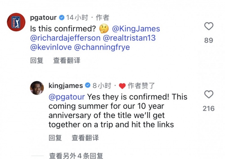 足球比分网11月6日讯 今日,职业高尔夫冠军巡回赛(PGA Tour)官方Instagram晒出一段对前NBA球员、高尔夫业余球手JR·史密斯的采访。 你如何看待你哥们勒布朗(詹姆斯)现在也打起了高尔夫? JR·史密斯:“我很喜欢。我只是希望当年我们一起打球时,他能支持我打高尔夫。之前他总是抱怨我打高尔夫,现在他几乎每天都在打。我还没和他打过高尔夫,不过我很期待。我们的冠军群聊很热闹,我们都在计划高尔夫之旅,这很酷,大家就是聚在一起,也算是夺冠十周年聚会。那会很有趣。” 你是那个群里最好的高尔夫球手吗? JR·史密斯:“当然是了。特里斯坦(汤普森)很差劲,凯文(乐福)还挺有运动能力的,我们都看过勒布朗的挥杆动作,钱宁(弗莱)跟糟糕。我不得不说,RJ(理查德·杰弗森)可能是我最大的竞争对手。只是他的精神状态不稳定,不足以打高尔夫,我不认为他会延续很久。” PGA巡回赛官方账号在评论区询问这次聚会能否被证实,詹姆斯回复道:“是的,这可以被确认!明年夏天是我们夺冠十周年纪念,我们会一起旅行,打打高尔夫。”