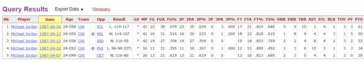 乔丹(237分) 1987年4月,乔丹曾在5场比赛里砍下237分。