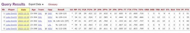 东契奇(228分) 2022年12月,东契奇曾在5场比赛里砍下228分。