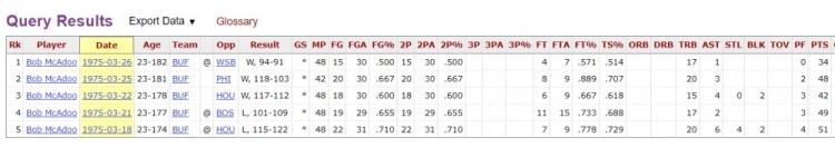 鲍勃·麦卡杜(224分) 1975年3月,麦卡杜曾在连续5场里砍下224分。
