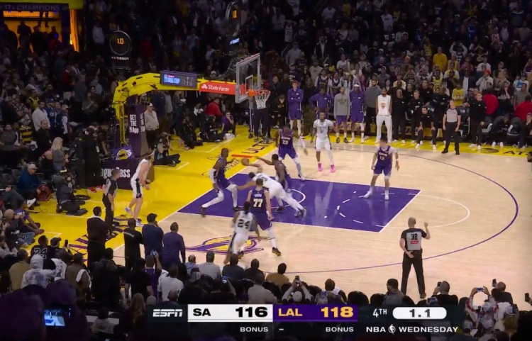 马刺vs湖人L2M:马刺0.4秒误获球权 尚帕尼造犯规