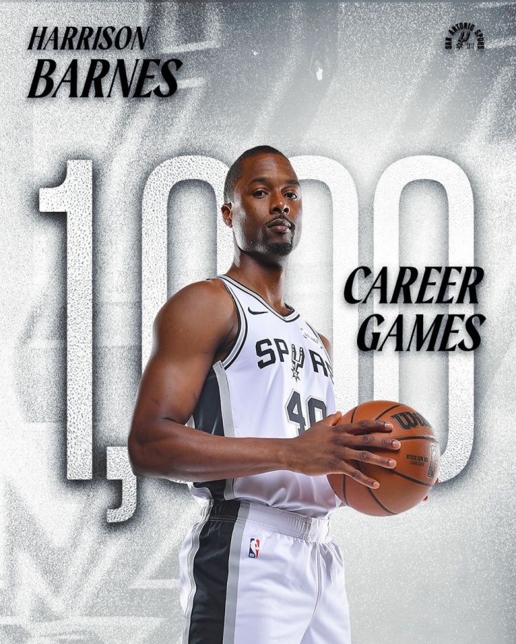 现役第16位!马刺官方祝贺哈里森·巴恩斯达到