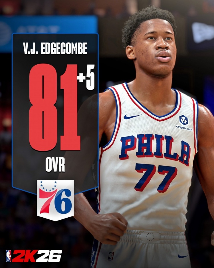 足球比分网11月7日讯 NBA 2K更新了球员最新的实时能力值,官方也发布了其中几个比较受关注的新秀球员变化。像是开季发挥出色的埃奇库姆,能力值提升了5点,达到了81。科沃德提升幅度巨大,达到8点,能力来到了80。 其余详细情况:克内佩尔79(+4),费尔斯78(+5),卡尔克布伦纳78(+8)。