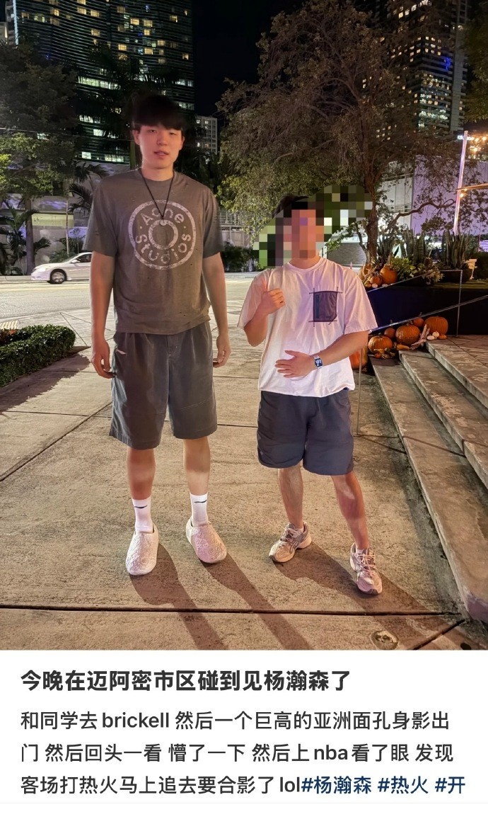 迈阿密球迷偶遇杨瀚森并合影晒照 网友提醒:别