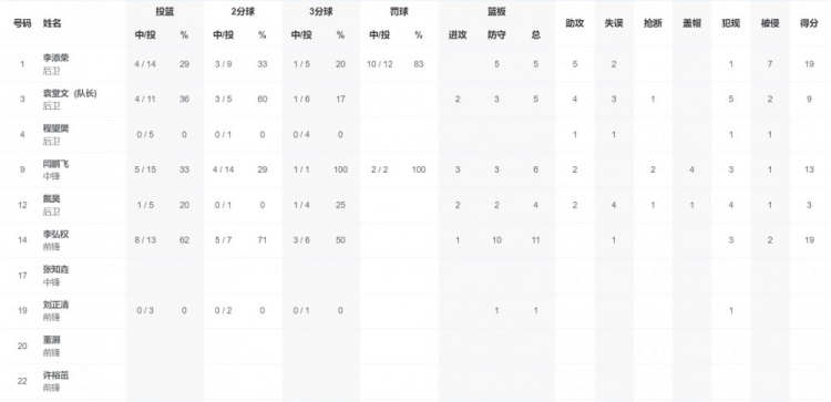 上海全运男篮,李添荣19分5助,李弘权19分11板,闫鹏飞13分6板。