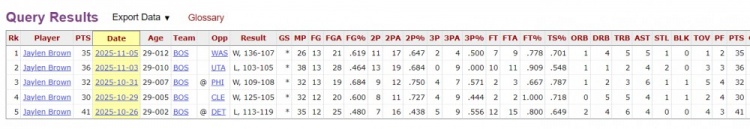 杰伦·布朗本赛季已经6次砍下30+ 东部所有球员中