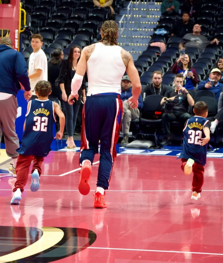 铁汉柔情!阿隆·戈登带着两个小侄子参加赛前热