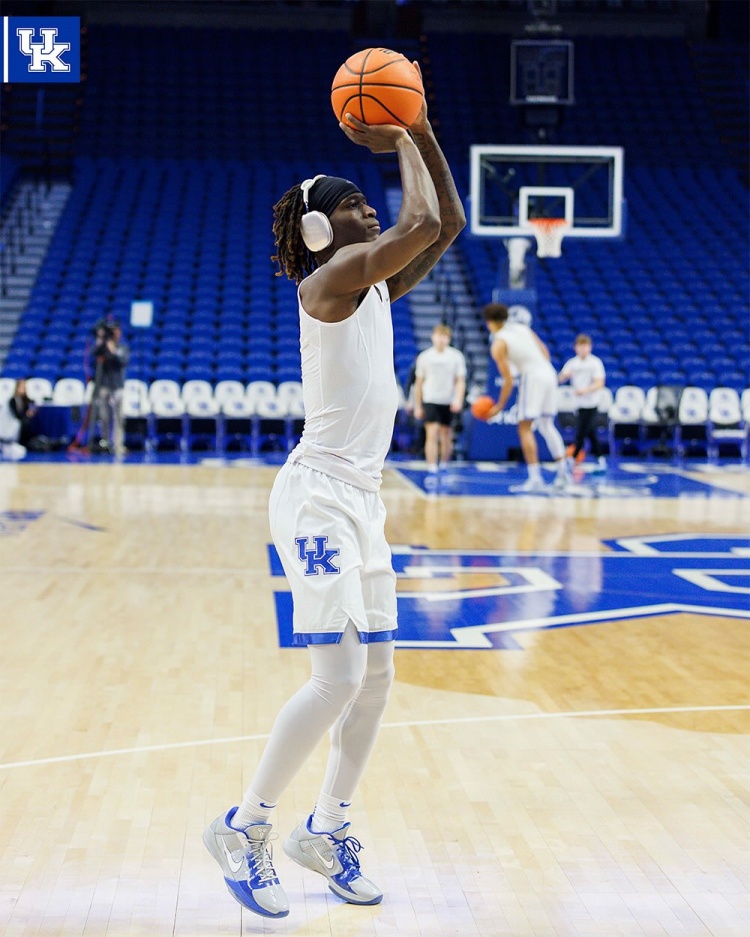 足球比分网11月9日讯 肯塔基大学男篮官方社媒晒出了一双新的Kobe 5 PE鞋款,同时晒出了球员们的上脚训练照。 而在此之前,肯塔基还发布了一款蓝色主色调的Kobe 5 PE。