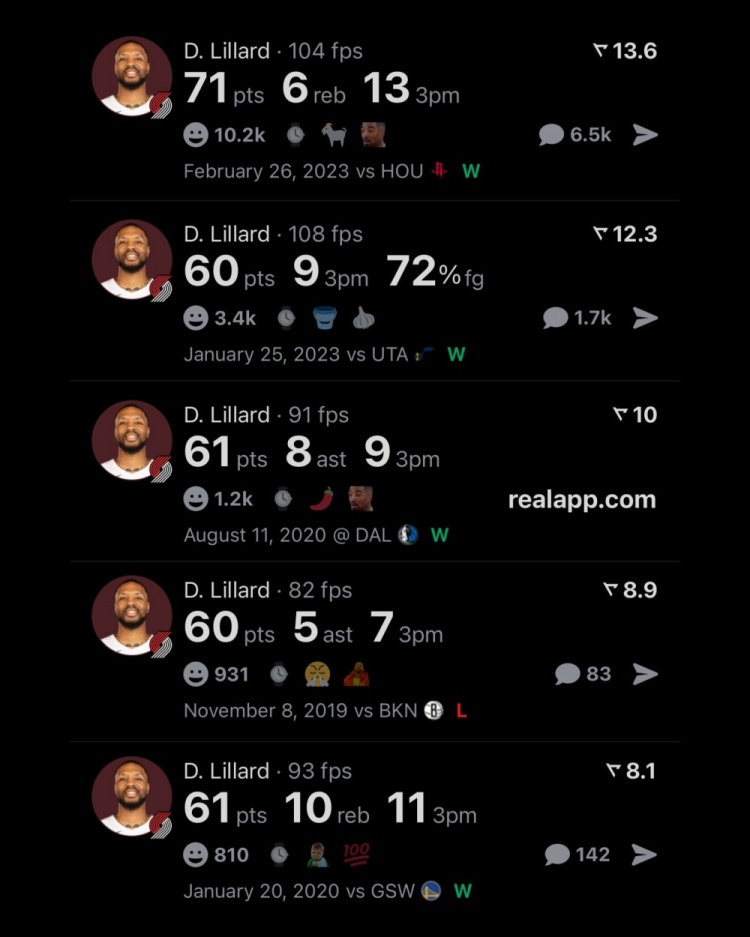 足球比分网11月10日讯 数据媒体Real Sports列出了NBA历史上单场得分60+次数最多的球员。 其中张伯伦第一多,他一共有32次,科比有过6次,而利拉德排名第三,他有过5次60+得分经历。