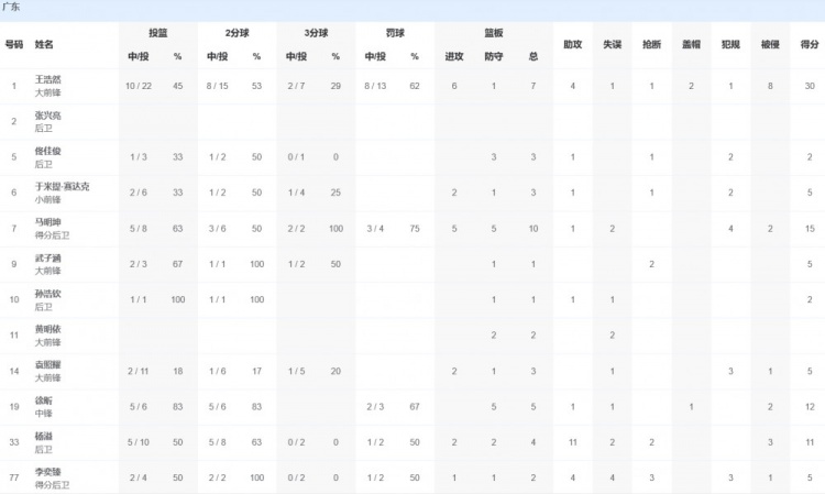 全运会小组赛-王浩然30分7板4助 广东全运U22男篮