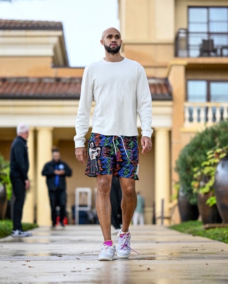 凯尔特人众将入场穿搭:小白花裤子配长T 科塔骚