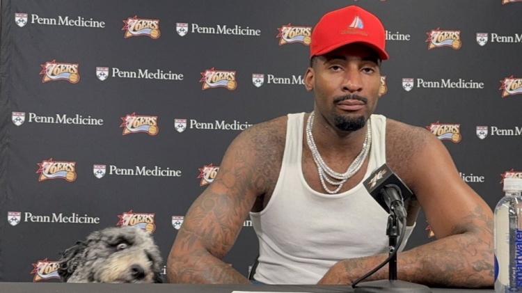 足球比分网11月10日讯 NBA常规赛,76人108-111不敌活塞。 赛后,德拉蒙德带着他的爱犬鲍勃·马利来到比赛现场,这只狗狗和他一起坐在新闻发布台上。 本场德拉蒙德出战35分钟,投篮9中6,三分4中2,罚球4中3,拿下17分12篮板2助攻1抢断1盖帽。 |