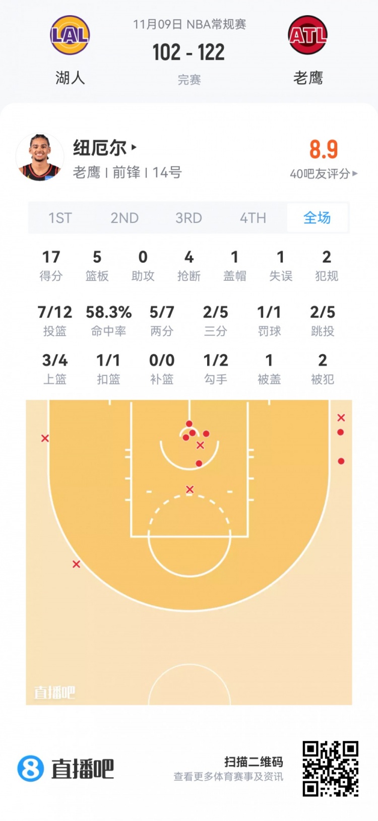 【菜鸟】纽厄尔17分4断抢懵湖人 弗拉格12分7板