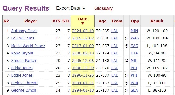 斯玛特单场7断 平浓眉科比路威等6人并列湖人队