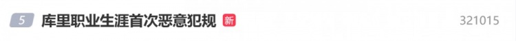 仍是顶流!“库里职业生涯首次恶意犯规”冲上