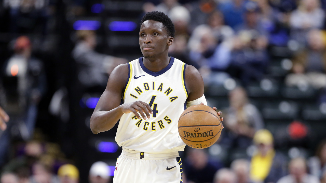 这与这位33岁的球员七年前的境遇相去甚远。 他的意志与身体状态时常相悖。奥拉迪波曾是NBA最具爆发力的运动员之一。他标志性的脚踝终结者动作和优雅的空中姿态让他两次入选全明星。但最终,那些曾晃倒无数对手的动作,也磨损了他自己的脚踝。很少有人预料到他能再次慢跑着出现在NBA球场上。哪怕只是慢跑,都已是一项成就。 奥拉迪波是2013年选秀的榜眼,他历经波折,最终成为球队的核心。他在2018年和2019年入选全明星。在2017年7月与多曼塔斯·萨博尼斯一起被雷霆交易至步行者换取保罗·乔治后,奥拉迪波成长为了步行者的当家球星。