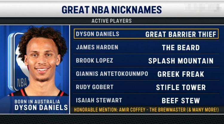 美媒盘点联盟中有趣的球员绰号:大闸窃贼&大胡