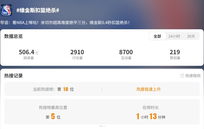 绝妙战术! “维金斯扣篮绝杀”词条一度来到热