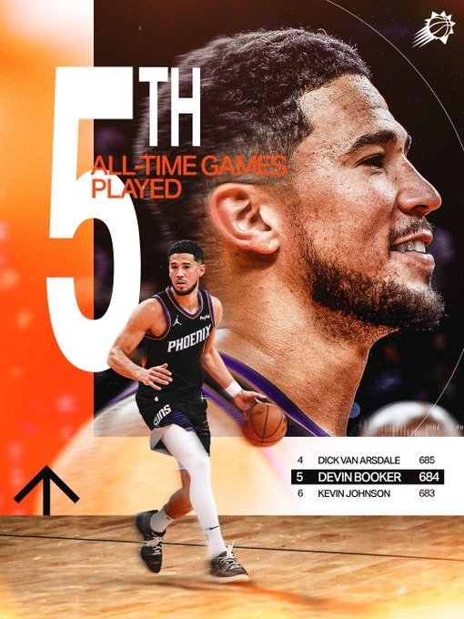 里程碑!布克太阳生涯出战684场比赛 超越凯文·