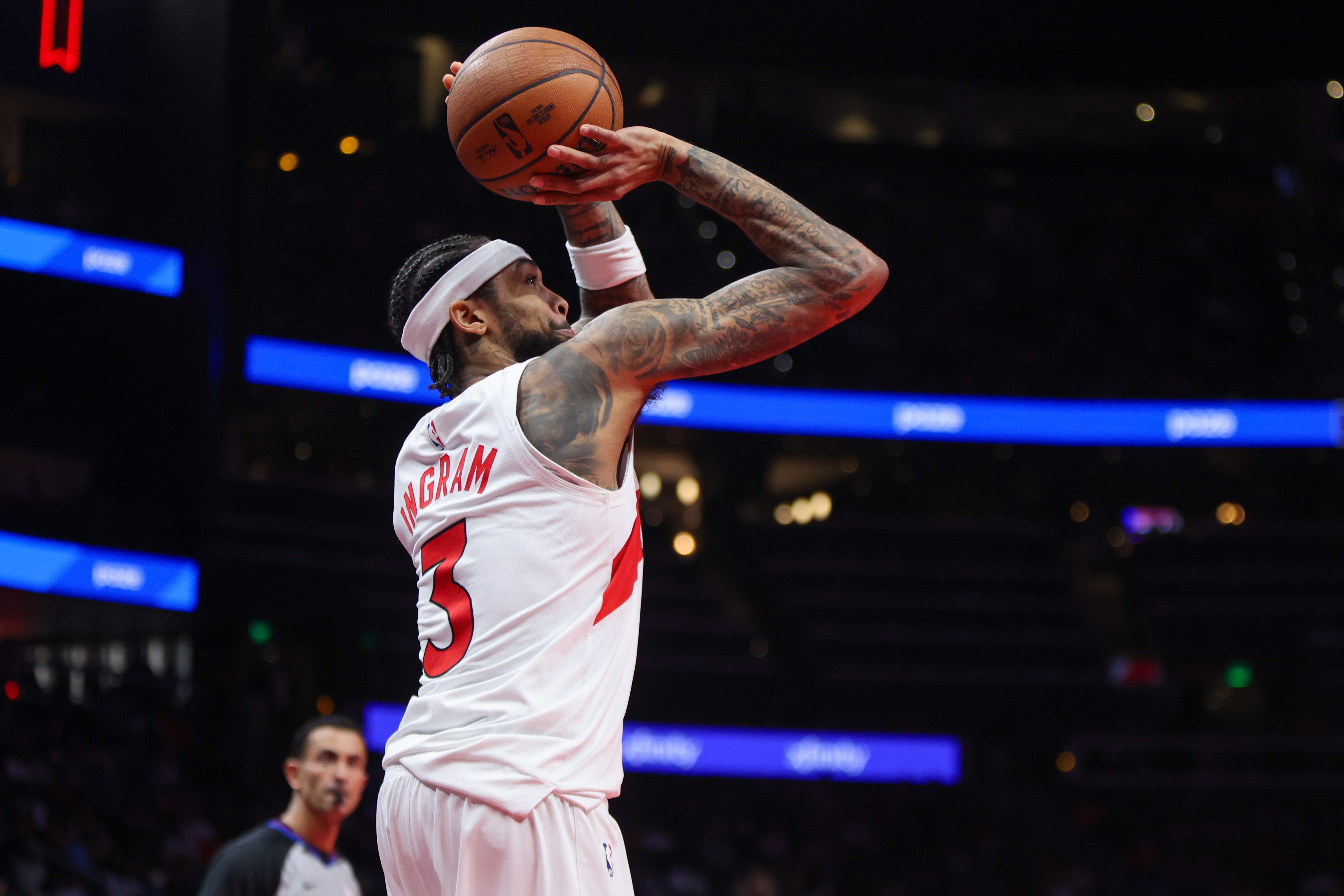 足球比分网11月12日讯 NBA常规赛,猛龙119-109击败篮网。 此役猛龙前锋英格拉姆表现不俗,打了32分钟17投8中,三分6中1、罚球9中8砍全场最高25分外加5篮板4助攻1抢断1盖帽,正负值-1。 |