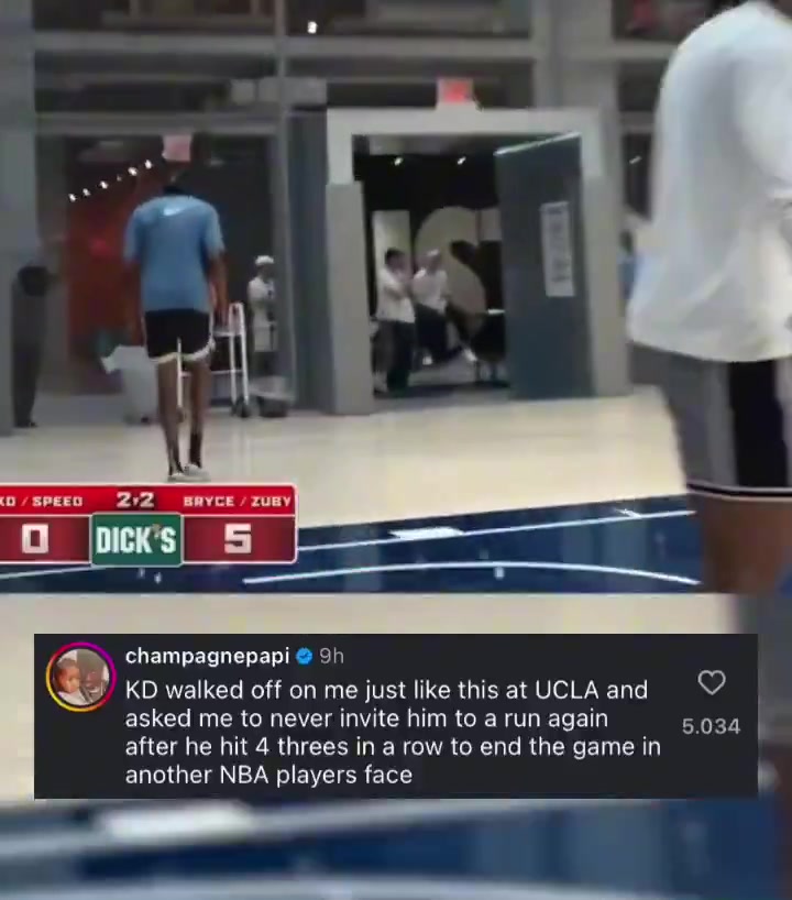 足球比分网11月14日讯 杜兰特近日做客了Speed的直播,他与Speed组队对抗两位大学球员。 比赛打着打着,杜兰特嫌弃Speed上篮不中,直接脱下了球鞋选择退赛,他表示:“这个上篮我真是受不了了。等我有了更强的队友我会回来的。”