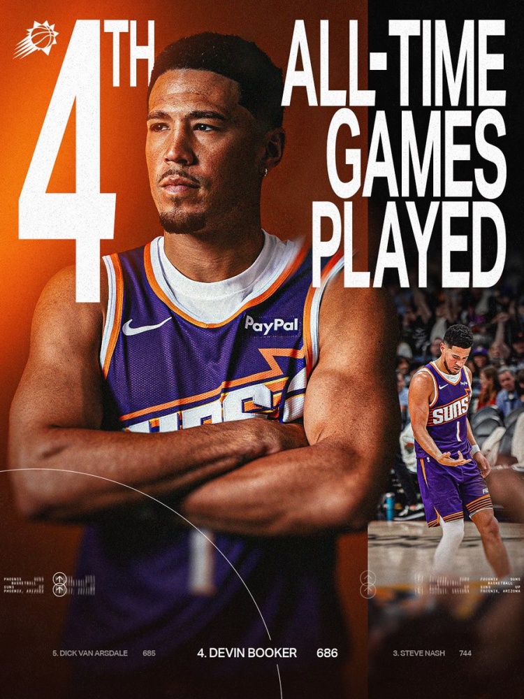 已是球队传奇!布克太阳生涯出场数升至队史第