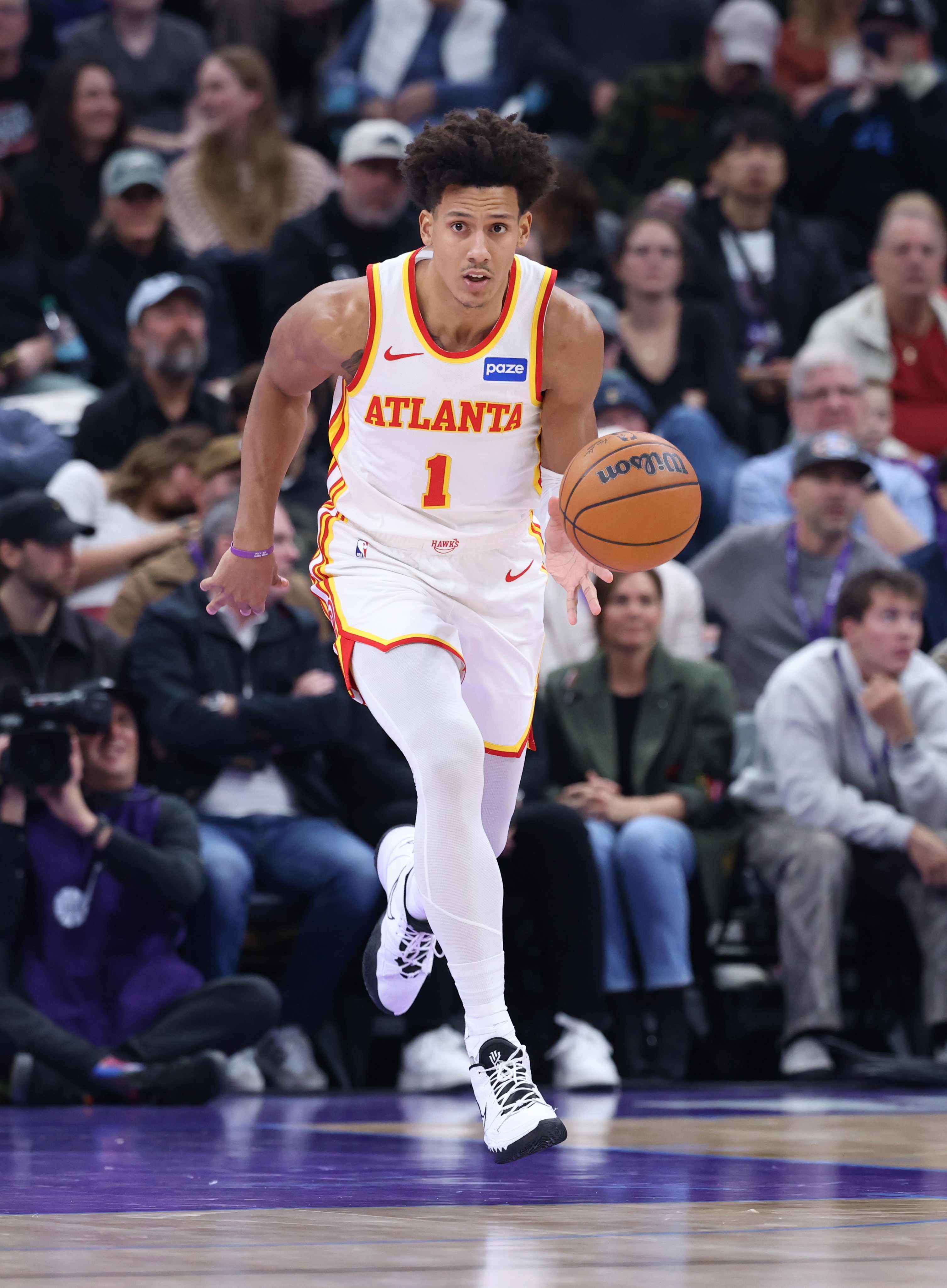 足球比分网11月15日讯 昨日NBA常规赛,老鹰队客场132-122战胜爵士队。 此役,“新鹰王”杰伦·约翰逊爆砍31分18篮板14助攻,助队取胜。本赛季至今,约翰逊场均出战32.2分钟,砍下21.5分9.5篮板6.3助攻1.8抢断。 而值得一提的是,在其菜鸟赛季,约翰逊仅获得22次出场机会,场均出战5.5分钟,仅得到2.4分1.2篮板;到了第二个赛季,约翰逊场均获得14.9分钟出场时间,拿到5.6分4.2篮板1助攻;直到第三个赛季,约翰逊终于迎来质变,场均出战33.7分钟,数据涨到16分8.7篮板3.6助攻1.2抢断。