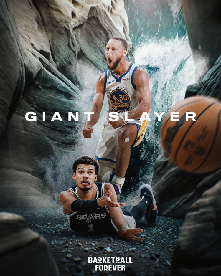美媒晒P图:库里背靠背对阵文班亚马领衔的马刺