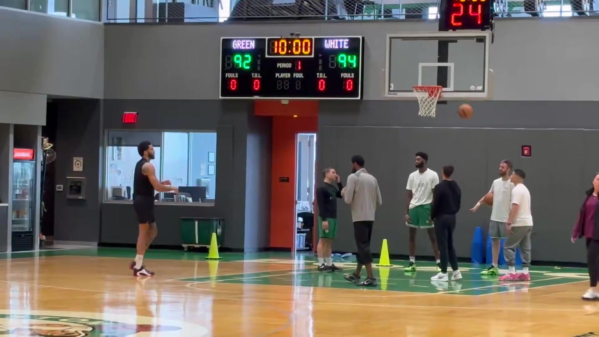 足球比分网11月15日讯 据绿军随队记者Daniel Donabedian报道,绿军球星塔图姆今日回到了凯尔特人训练馆,并进行了简单的投篮训练。 塔图姆在今年5月13日的季后赛中遭遇跟腱断裂,名记Chris Haynes此前曾报道,塔图姆有望在本赛季复出。
