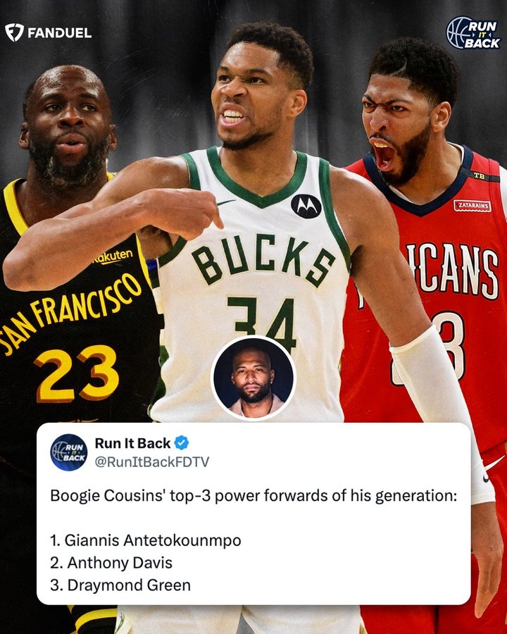 足球比分网11月15日讯 近日前NBA球员考辛斯做客《Run It Back》节目,谈到了自己同代球员中的前三大前锋,具体如下: 1、字母哥 2、浓眉 3、追梦