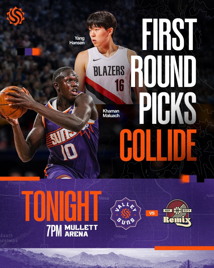 足球比分网11月15日讯 今日10:00,G联赛开季赛,山谷太阳将坐镇主场对阵撕裂之城混音。 山谷太阳发布本场比赛海报,封面人物为马卢阿奇与杨瀚森。 “首轮秀对决!”山谷太阳配文道。 马卢阿奇与杨瀚森分别为首轮10号秀与16号秀,两人均被各自球队下放至G联盟,今日将迎来对决。 赛季至今,两人在NBA的场均数据分别为马卢阿奇1.9分0.9篮板0.6盖帽,杨瀚森1.8分0.8篮板0.4盖帽。