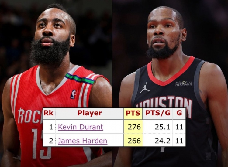 杜兰特火箭生涯前11战合砍276分 超越哈登居队史