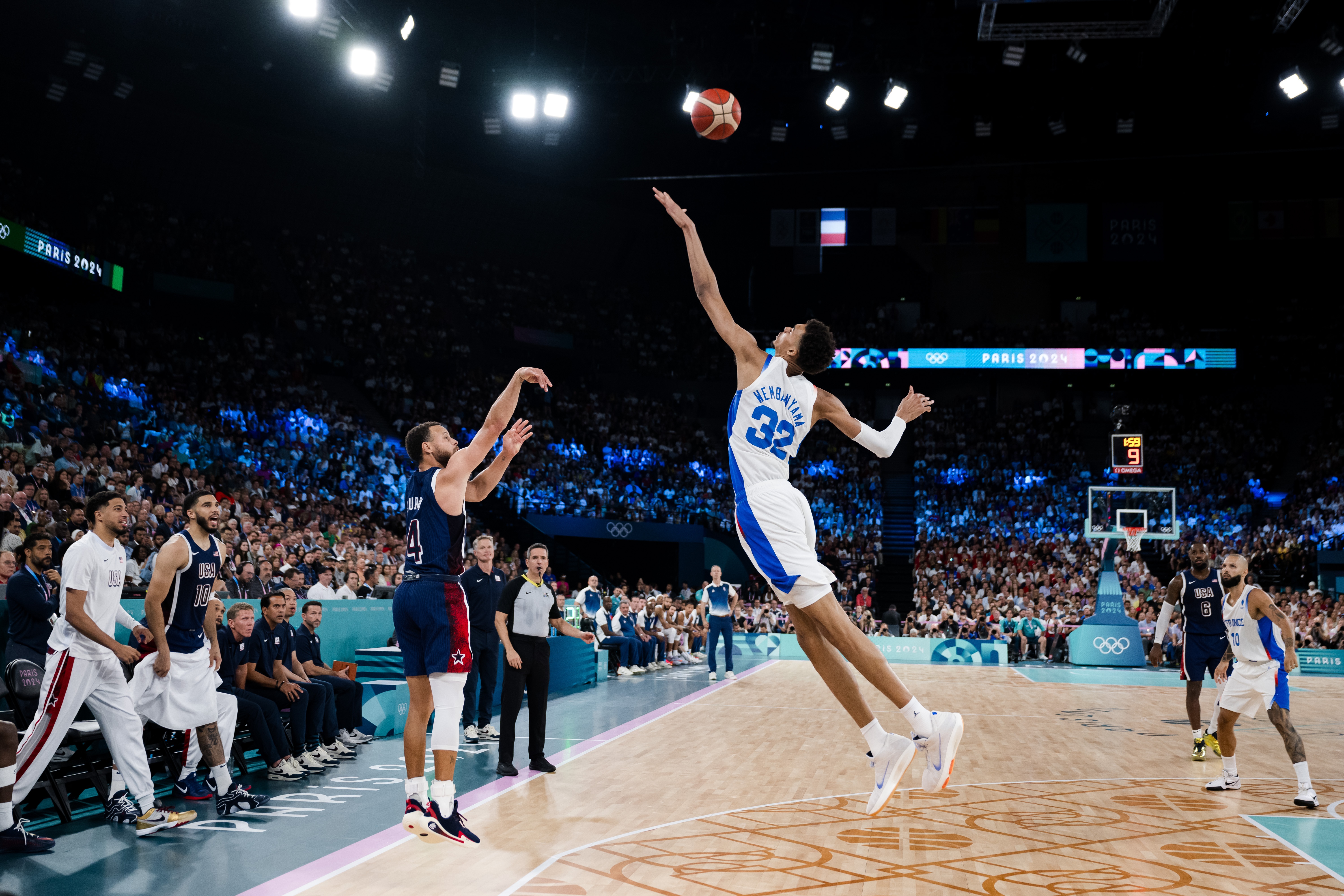 足球比分网11月15日讯 NBA杯,勇士109-108击败马刺。 赛后,科尔接受了记者采访。当被问及自己是否想起来巴黎奥运会的最后时刻时,他说道:“实际上我没有。但我依旧还记得在巴黎奥运会库里面对文班出手三分的那张图。我们要把那个照片Copy下来,放在我房间的某个地方。那看起来真是非凡的。当我们看到那个垂直高度,以及他(文班亚马)的平衡度,还有对于比赛的影响,他真的太棒了。”