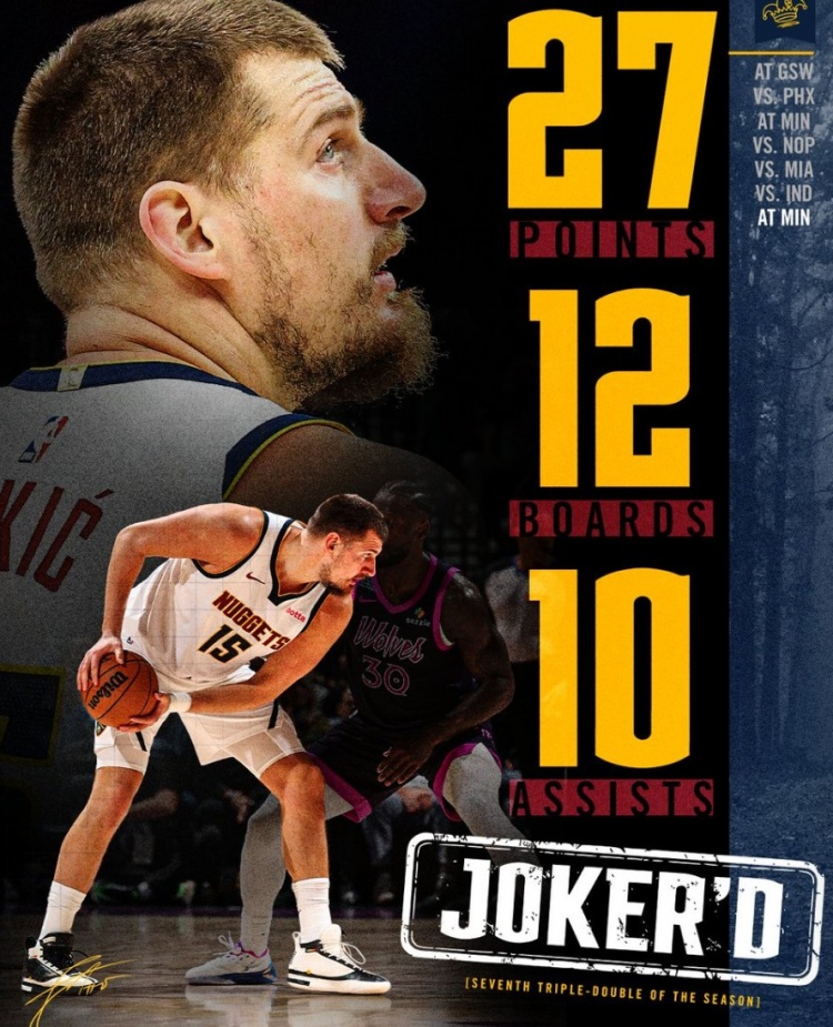 搞反了!掘金官方修正约基奇数据:27分12篮板