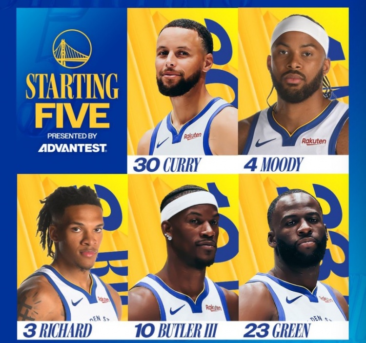 勇士首发:库里、穆迪、威尔·理查德、巴特勒、